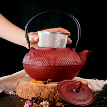 Produto: Chaleira de Ferro Fundido Interior Esmaltado Vermelha - MTA