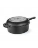 O Conjunto Caçarola Frigideira Multiuso da Fumil traz versatilidade pra sua cozinha, a parte de baixo é uma caçarola onde você pode preparar diversas receitas, sua tampa pode ser utilizada como frigideira, podendo preparar carnes, peixes, panquecas entre outros alimentos, o conjunto pode ser utilizado como assadeira, pois pode ir ao forno para preparar bolos e pães. Feita em ferro fundido conserva o calor dos alimentos por mais tempo, é anti-aderente devido a sua porosidade.Nutritiva, fornece pequenas quantidades de óxido de ferro (ferrugem) e manganês nos alimentos produzidos, deixando-os mais saudáveis. Não deforma e não quebra, garantindo maior durabilidade. Também acompanha tampa de vidro que serve tanto para a caçarola quanto para a frigideira, e um pegador térmico que encaixa no cabo.
